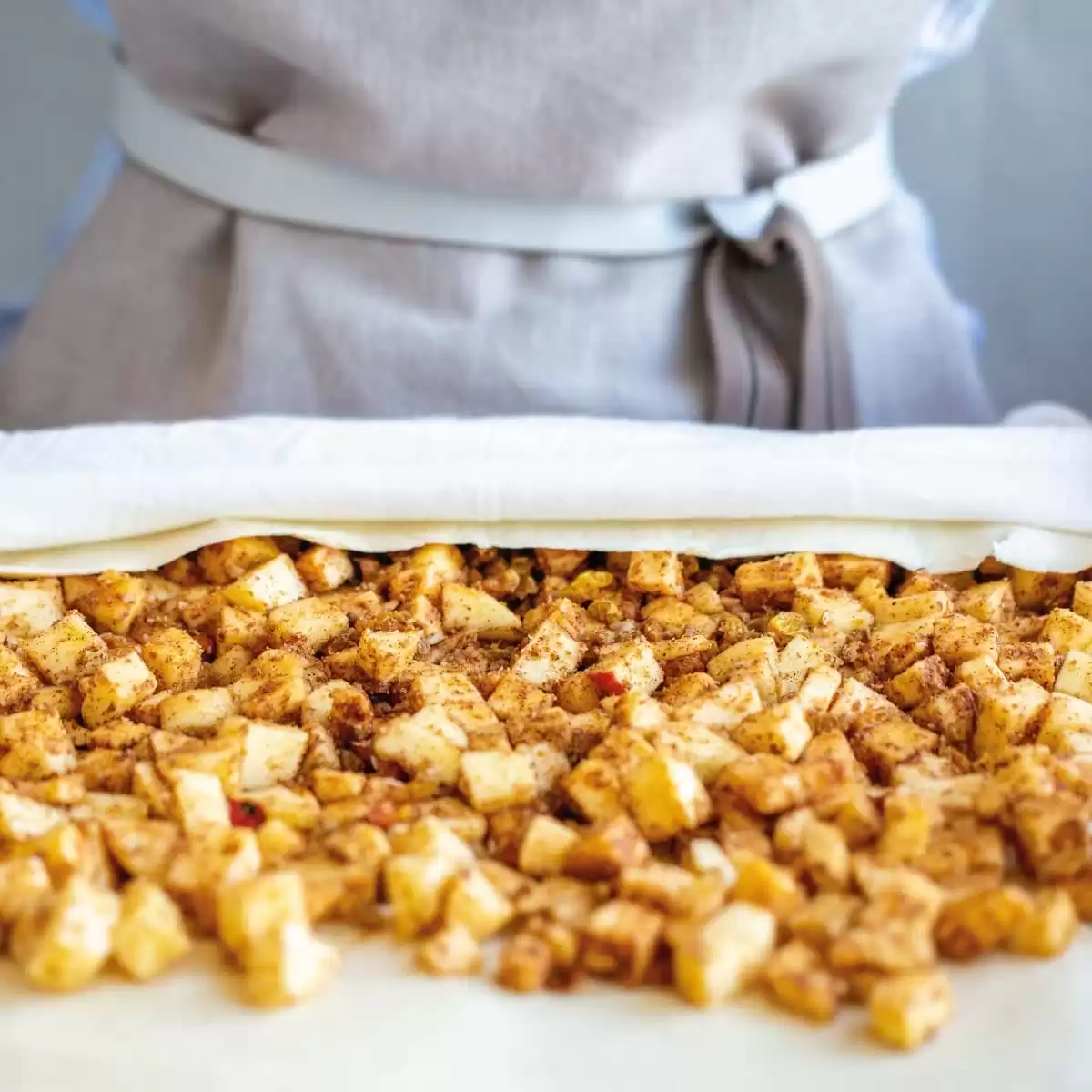 Directions: Take 2 sheets of pastry for 1 apple pie roll. Spread a few drops of oil over the top sheet and fill with approx…